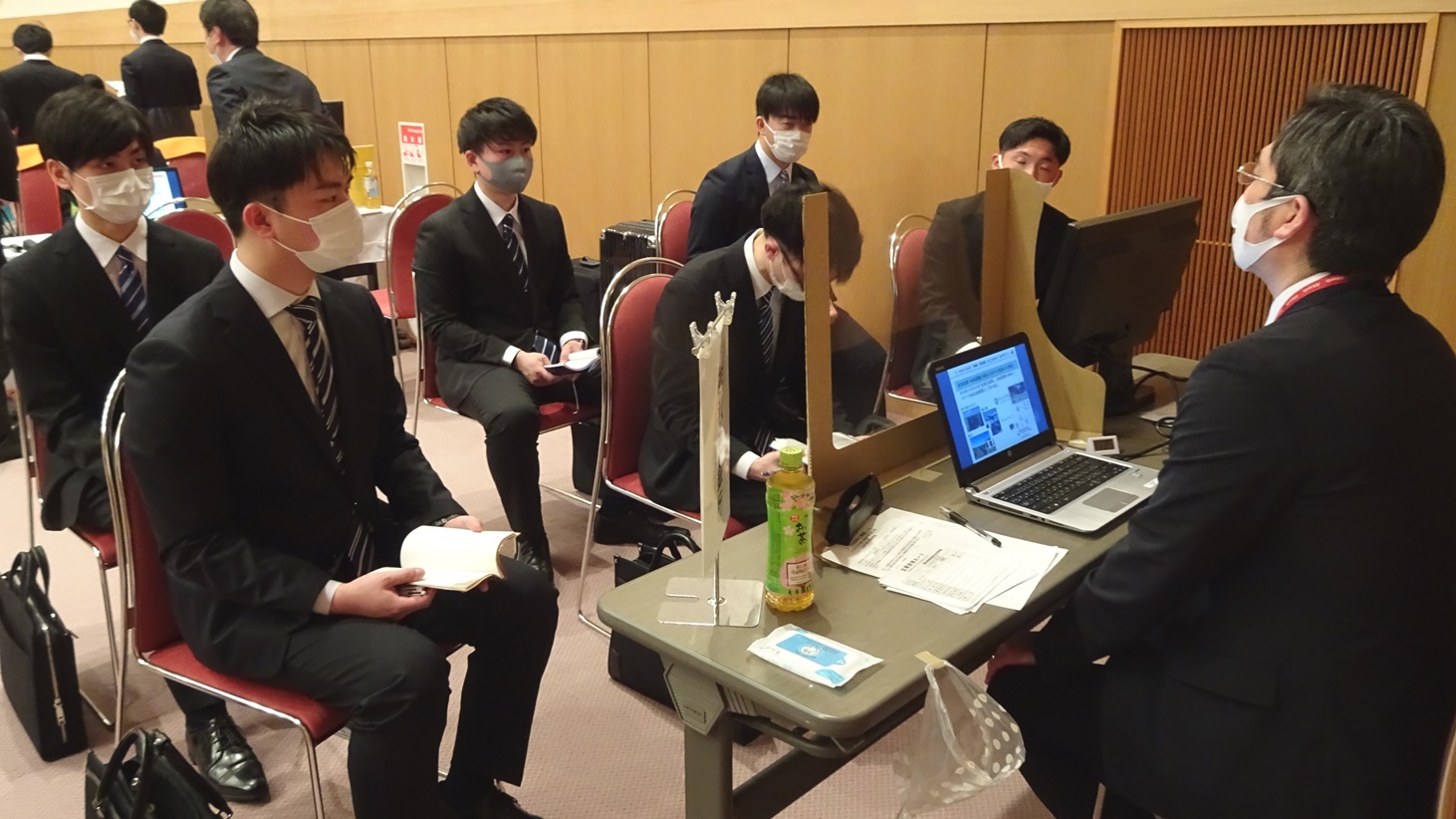 5月11日(日)に、秋田県内外から50を超える病院・施設のご参加をいただき,本学主催の「令和7年度合同就職面談会」を,ルネサンスガーデンプラザ杉の子で開催しました。参加した3年生・4年生は志望している、あるいは興味・関心ある病院・施設のブースを回り、メモを取りながら積極的に採用担当者から話しを聞き,多くの質問をしていました。 学生にとっては、今後の就職活動に直接結びつき、働きたい職場のイメージをつかむための貴重な相談の機会となっていました。