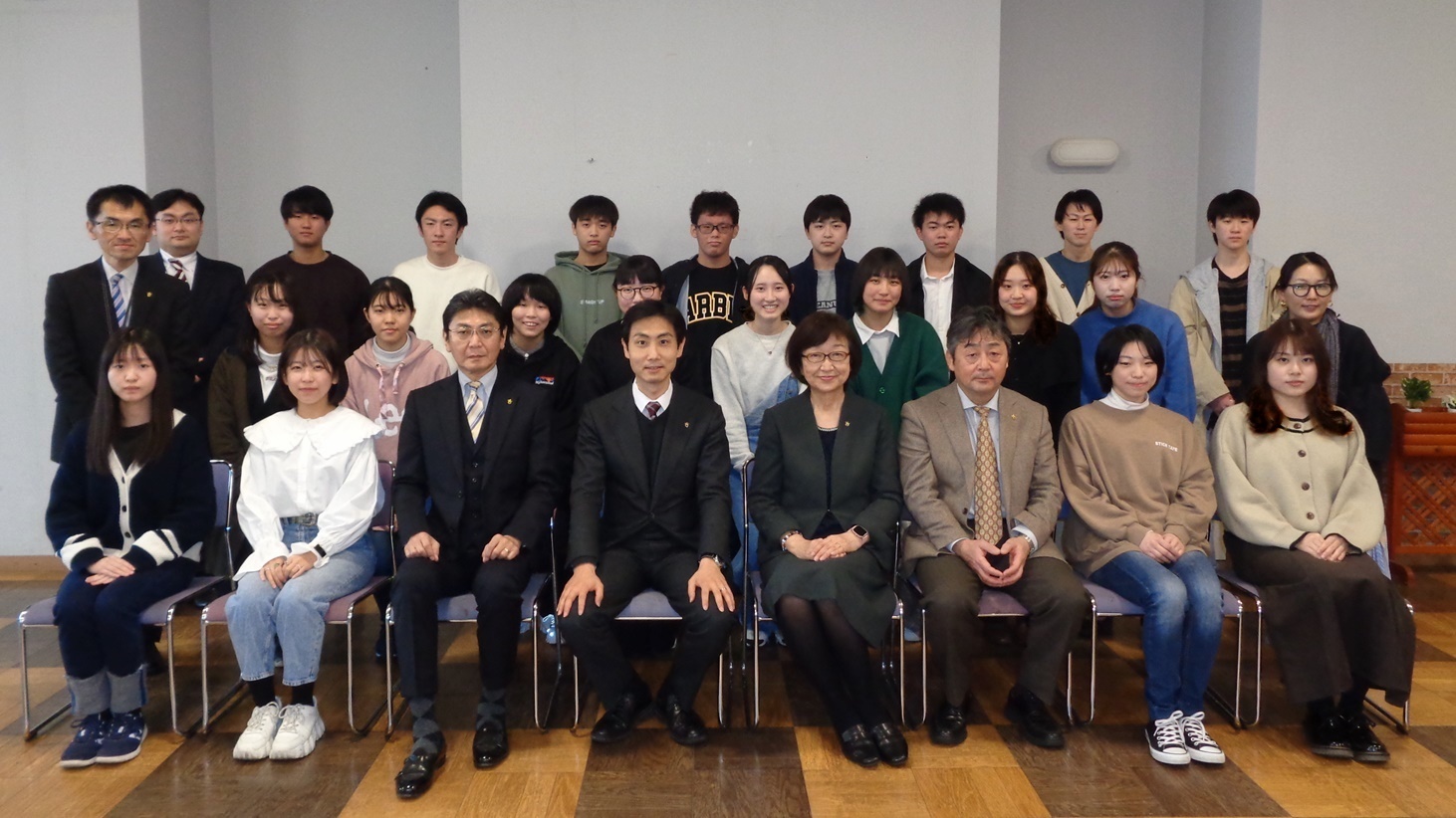 このたび「大館市健康づくりチャレンジ事業所認定事業」に本学が申請し、認定証を頂きました。この日は大館市役所で認定証交付式が行われ、保健師資格取得を目指し「公衆衛生看護学実習Ⅱ」の一環として、保健師資格を目指す本学看護学科4年生も運営に関わる中で、水木暢子学部長が認定証を受け取りました。大館市と連携し、職場ぐるみで教職員の健康づくりに取り組むことで、教育や学生支援のさらなる充実を図ります。